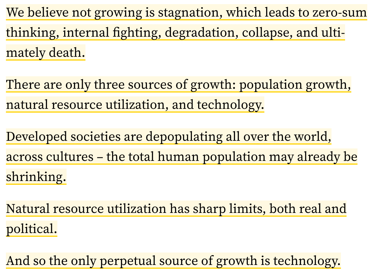 Marc Andreessen’s Techno-Optimist Manifesto. You don’t need to agree with every point (although I do with all) in order to get a surge of hope about humanity. Some favorite highlights below: