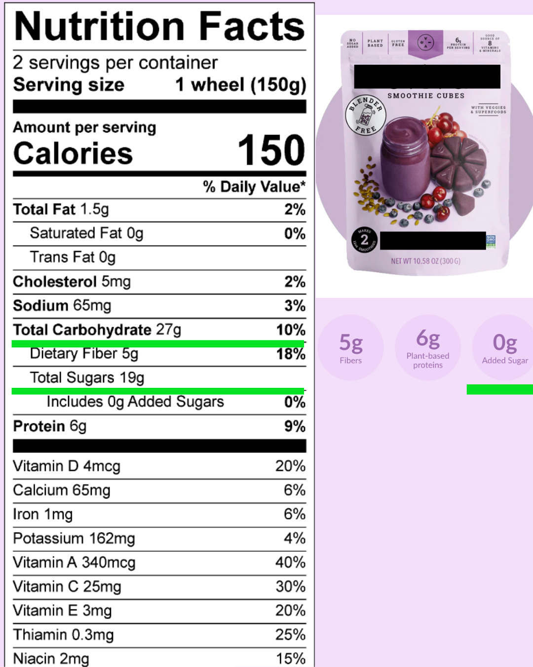 In the example below, the front of the packaging says “0 added sugar”, but if you look at the label and check Total Carbohydrates, you’ll see that it has 27 grams of carbs per serving out if which only 5 grams are fiber and 19 grams are sugar. If your total daily intake should be between 25-30 grams, well, 19 grams is quite a lot in a single serving.